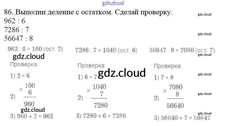 Ответ на задание 86 Учебник Математика за 4 (четвертый) класс Моро, Бантова, Бельтюкова, Волкова, Степанова Школа России 2015 Часть 1, 2