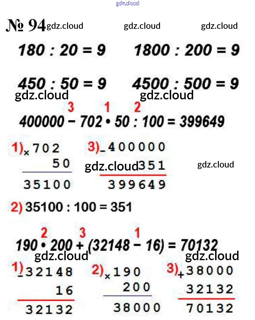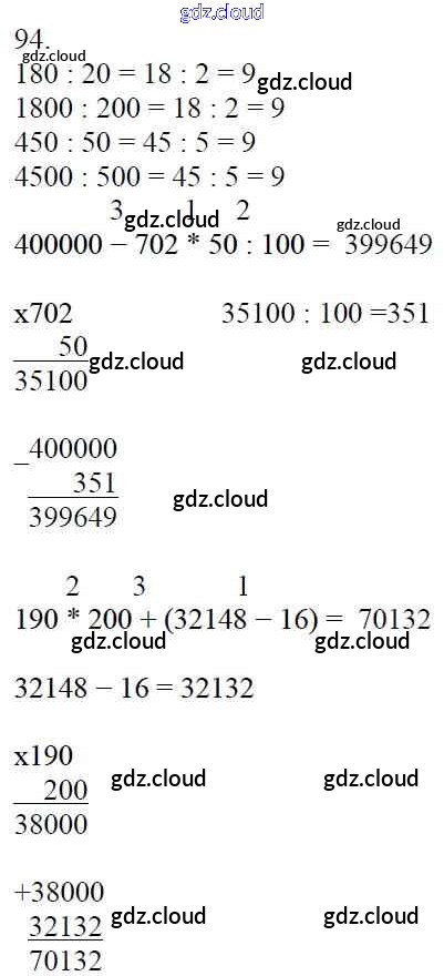 Ответ на задание 94 Учебник Математика за 4 (четвертый) класс Моро, Бантова, Бельтюкова, Волкова, Степанова Школа России 2015 Часть 1, 2