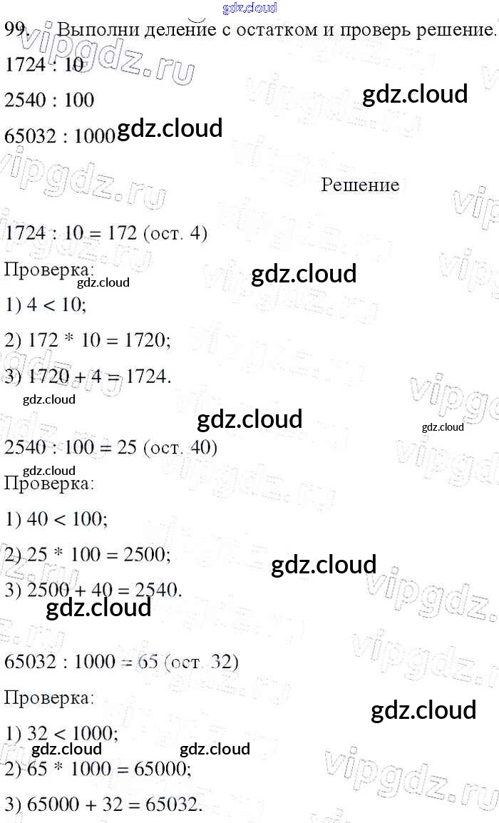 Ответ на задание 99 Учебник Математика за 4 (четвертый) класс Моро, Бантова, Бельтюкова, Волкова, Степанова Школа России 2015 Часть 1, 2