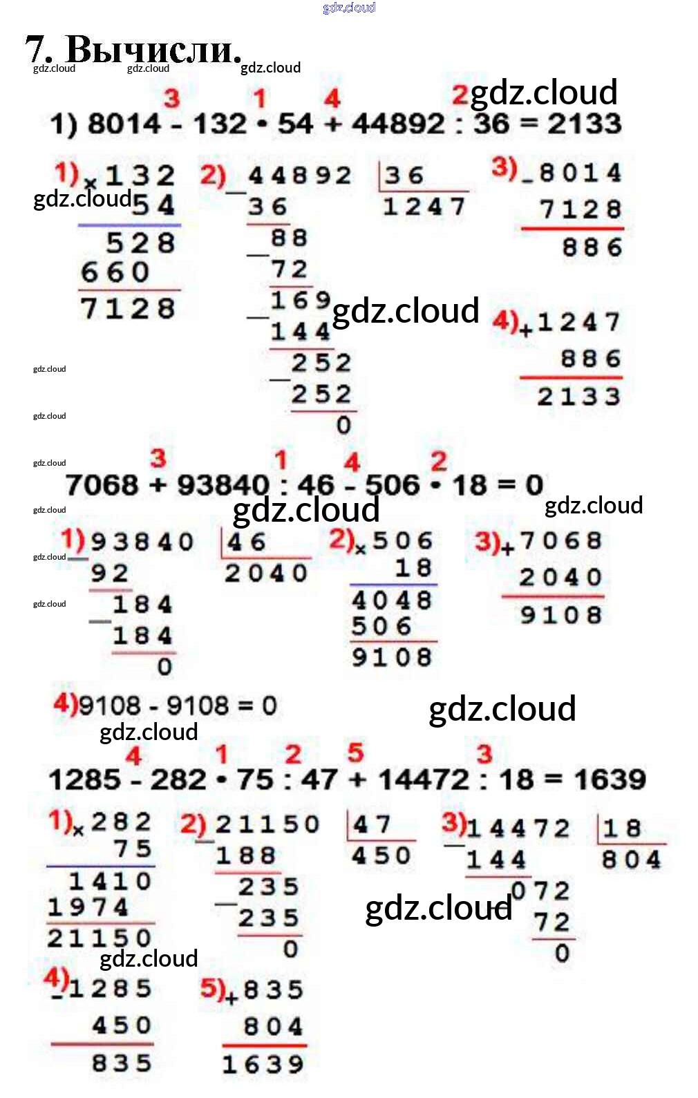 Ответ на задание 7 Учебник Математика за 4 (четвертый) класс Моро, Бантова, Бельтюкова, Волкова, Степанова Школа России 2015 Часть 1, 2