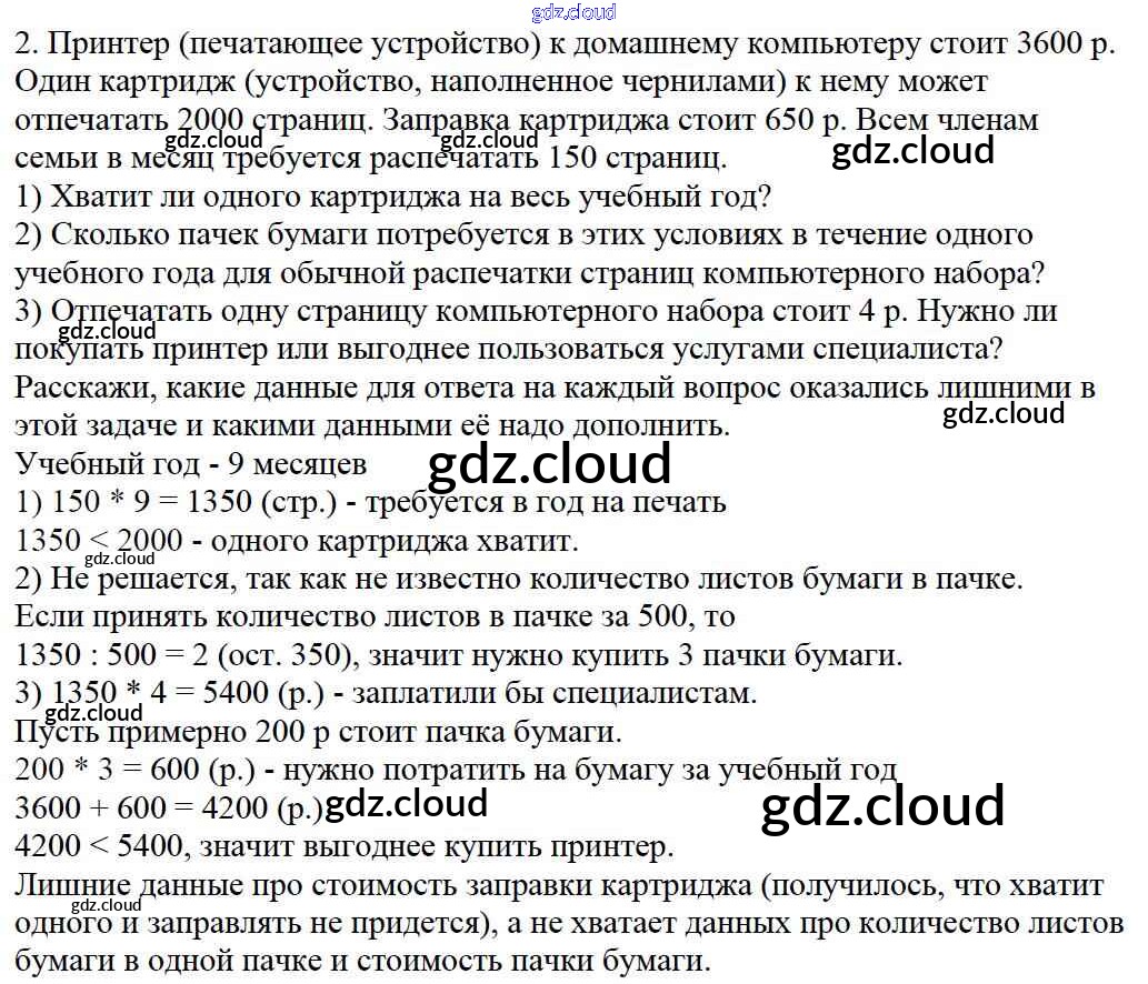 Ответ на задание 2 Учебник Математика за 4 (четвертый) класс Моро, Бантова, Бельтюкова, Волкова, Степанова Школа России 2015 Часть 1, 2