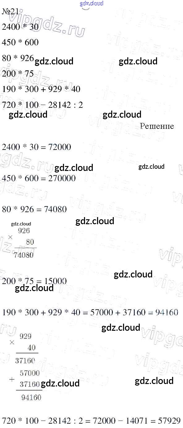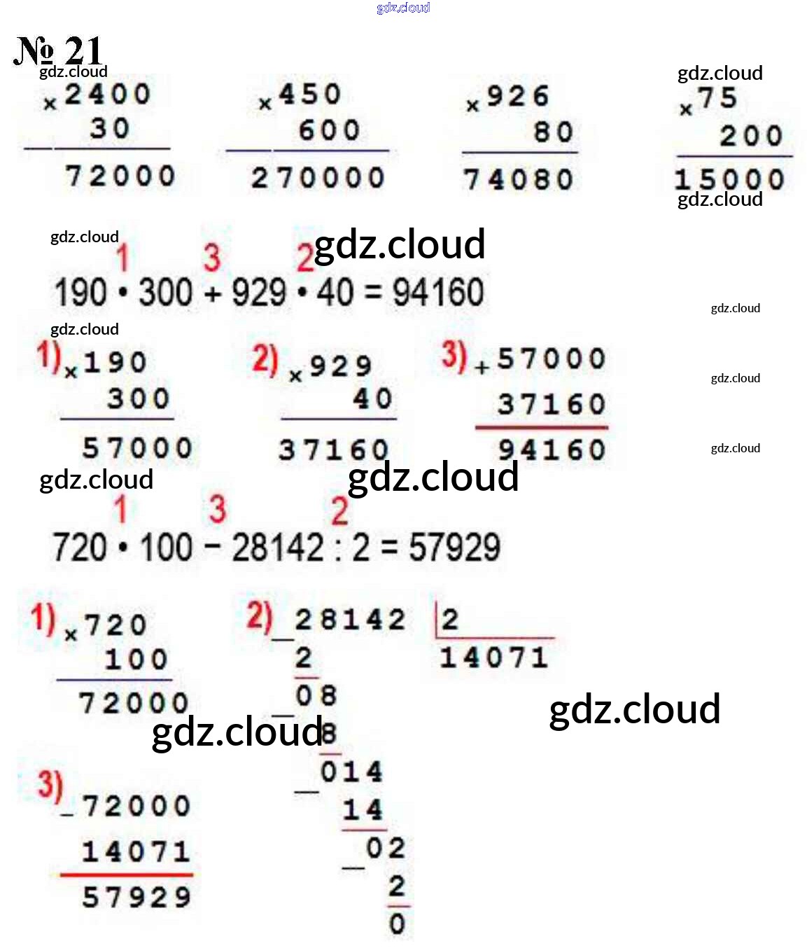 Ответ на задание 21 Учебник Математика за 4 (четвертый) класс Моро, Бантова, Бельтюкова, Волкова, Степанова Школа России 2015 Часть 1, 2