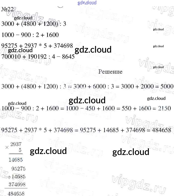 Ответ на задание 22 Учебник Математика за 4 (четвертый) класс Моро, Бантова, Бельтюкова, Волкова, Степанова Школа России 2015 Часть 1, 2