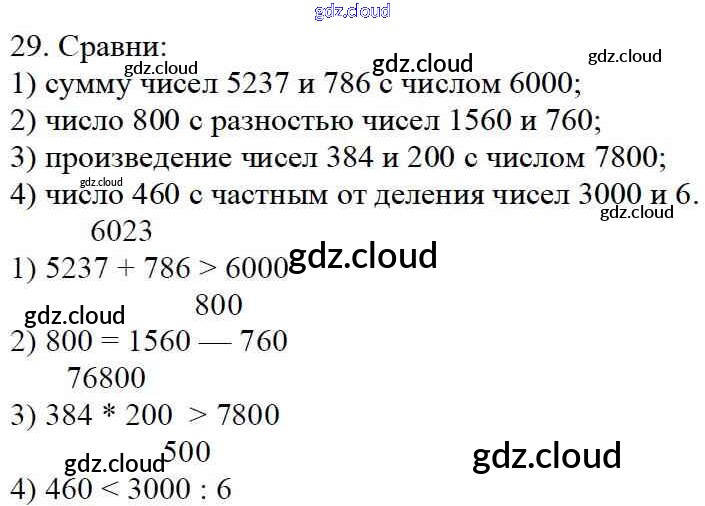 Ответ на задание 29 Учебник Математика  за 4 (четвертый) класс Моро, Бантова, Бельтюкова, Волкова, Степанова Школа России  2015 Часть 1, 2