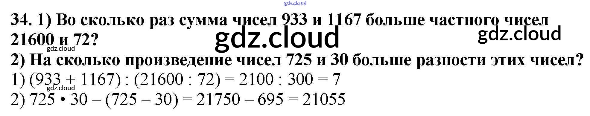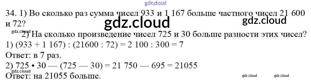 Ответ на задание 34 Учебник Математика за 4 (четвертый) класс Моро, Бантова, Бельтюкова, Волкова, Степанова Школа России 2015 Часть 1, 2