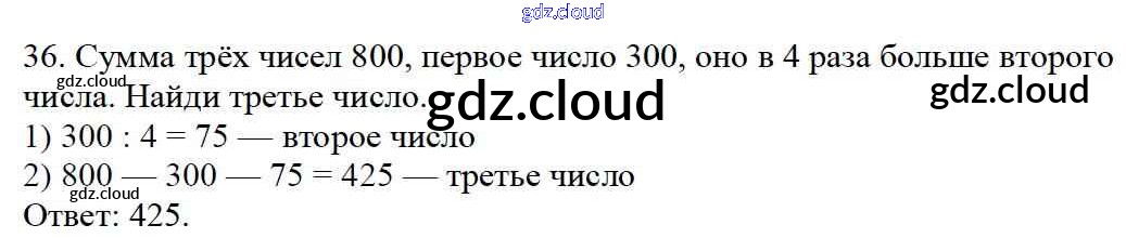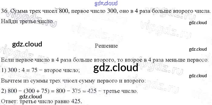 Ответ на задание 36 Учебник Математика за 4 (четвертый) класс Моро, Бантова, Бельтюкова, Волкова, Степанова Школа России 2015 Часть 1, 2