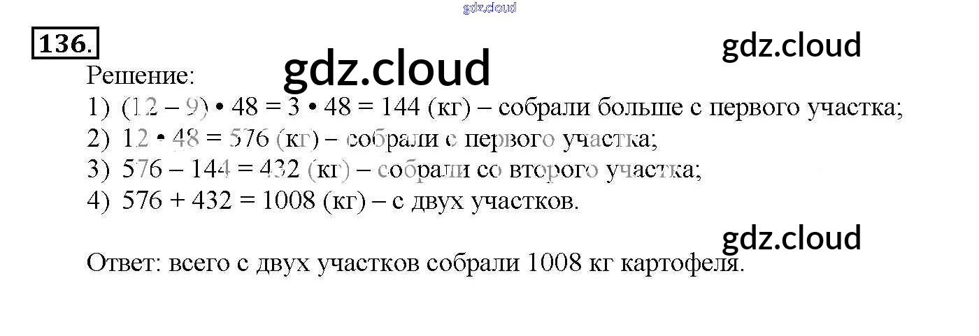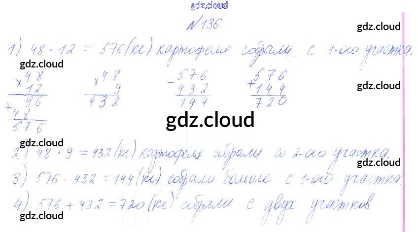 Ответ на задание 136 Учебник Математика за 4 (четвертый) класс Истомина Гармония 2014 Часть 1, 2