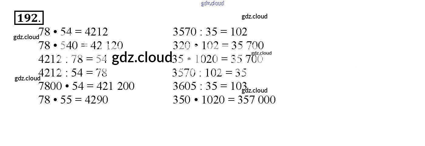 Ответ на задание 192 Учебник Математика за 4 (четвертый) класс Истомина Гармония 2014 Часть 1, 2