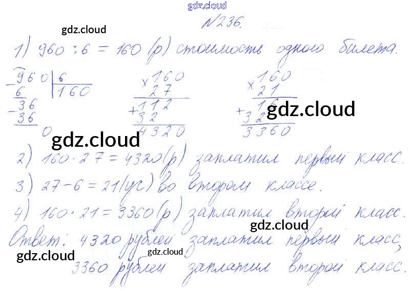 Ответ на задание 236 Учебник Математика за 4 (четвертый) класс Истомина Гармония 2014 Часть 1, 2