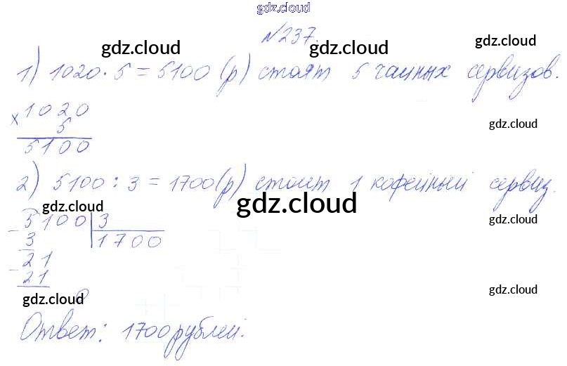 Ответ на задание 237 Учебник Математика за 4 (четвертый) класс Истомина Гармония 2014 Часть 1, 2