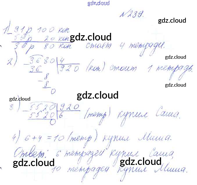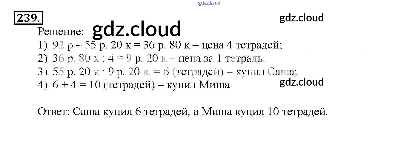 Ответ на задание 239 Учебник Математика за 4 (четвертый) класс Истомина Гармония 2014 Часть 1, 2