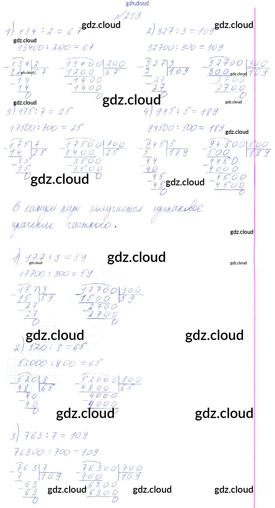 Ответ на задание 289 Учебник Математика за 4 (четвертый) класс Истомина Гармония 2014 Часть 1, 2