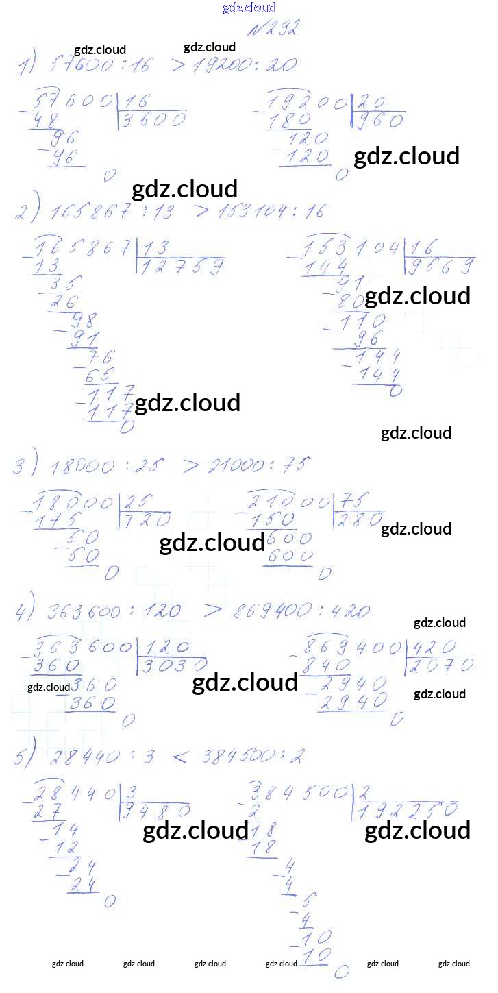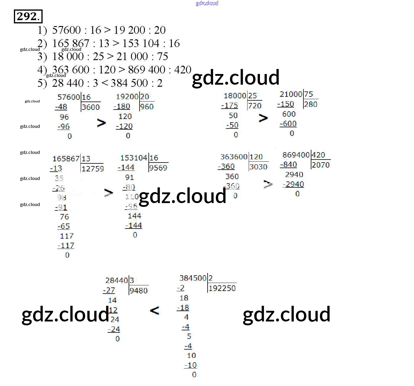 Ответ на задание 292 Учебник Математика за 4 (четвертый) класс Истомина Гармония 2014 Часть 1, 2
