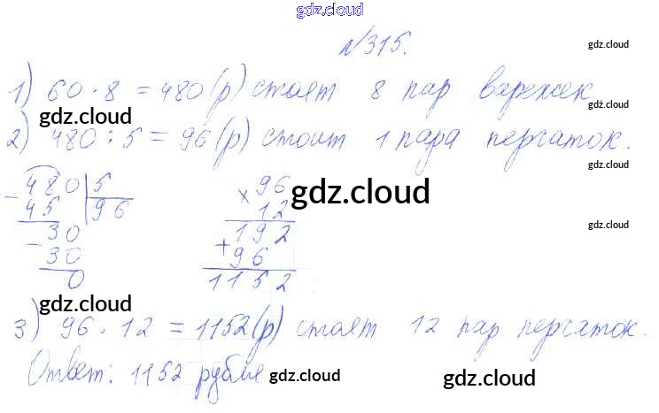 Ответ на задание 315 Учебник Математика за 4 (четвертый) класс Истомина Гармония 2014 Часть 1, 2