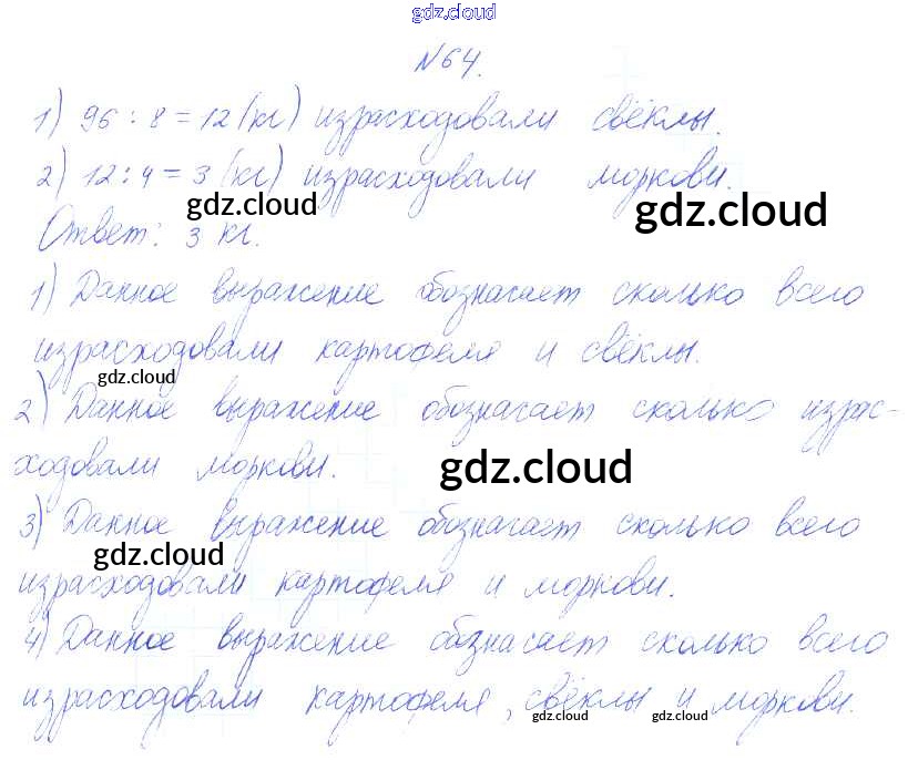 Ответ на задание 64 Учебник Математика за 4 (четвертый) класс Истомина Гармония 2014 Часть 1, 2