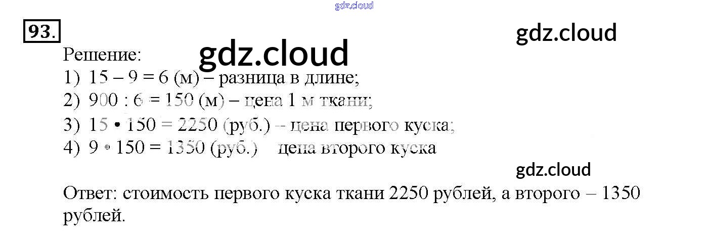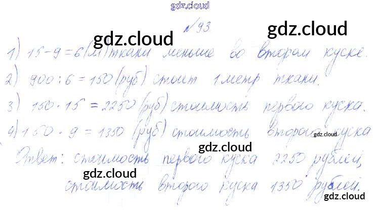 Ответ на задание 93 Учебник Математика за 4 (четвертый) класс Истомина Гармония 2014 Часть 1, 2