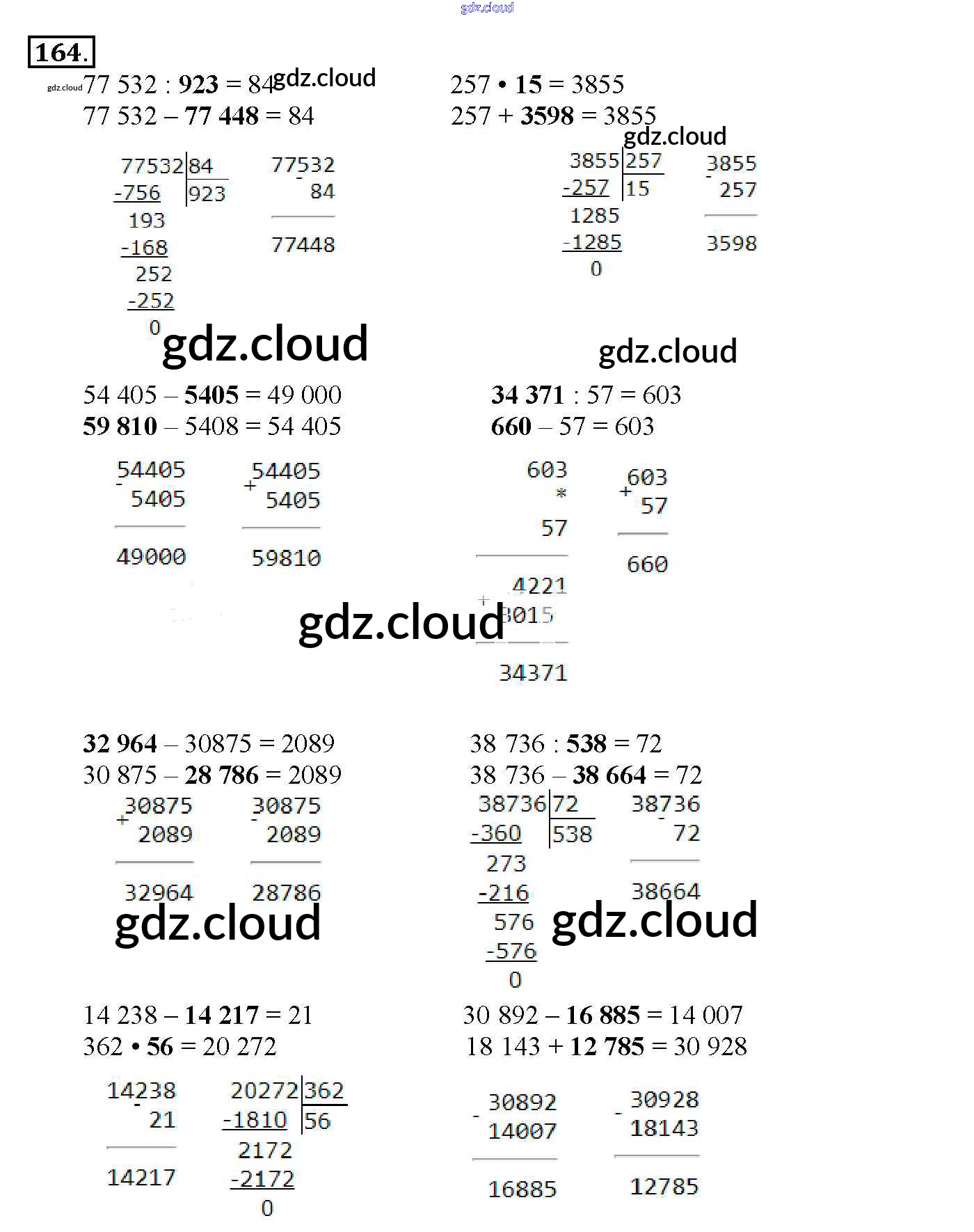 Ответ на задание 164 Учебник Математика за 4 (четвертый) класс Истомина Гармония 2014 Часть 1, 2