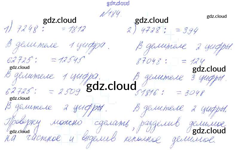 Ответ на задание 184 Учебник Математика за 4 (четвертый) класс Истомина Гармония 2014 Часть 1, 2