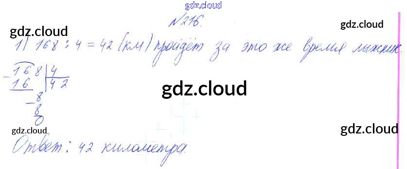 Ответ на задание 216 Учебник Математика за 4 (четвертый) класс Истомина Гармония 2014 Часть 1, 2