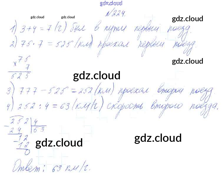 Ответ на задание 224 Учебник Математика за 4 (четвертый) класс Истомина Гармония 2014 Часть 1, 2