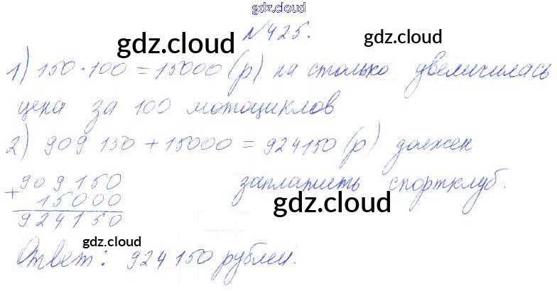 Ответ на задание 425 Учебник Математика за 4 (четвертый) класс Истомина Гармония 2014 Часть 1, 2