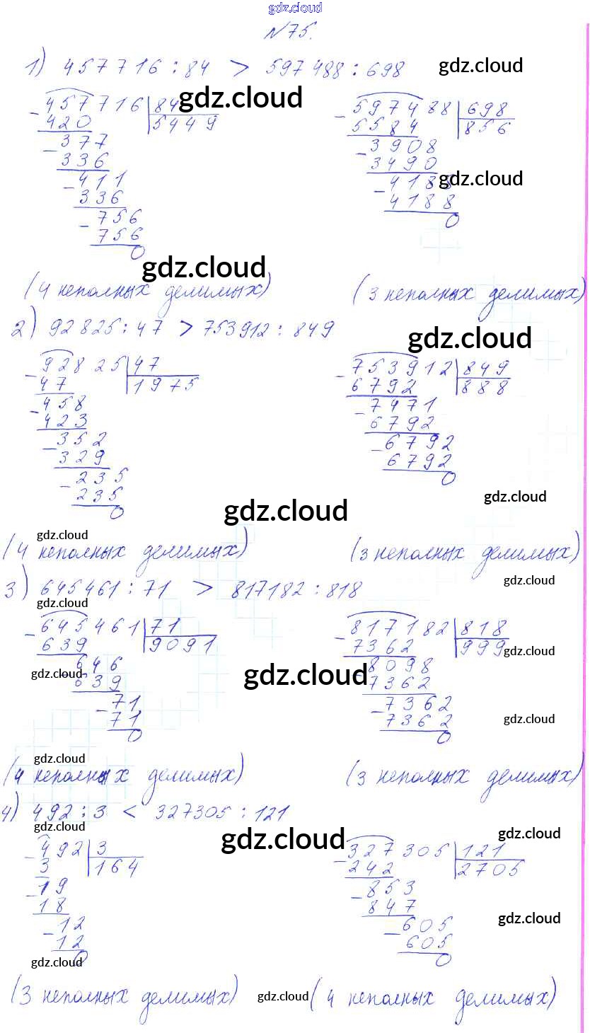 Ответ на задание 75 Учебник Математика за 4 (четвертый) класс Истомина Гармония 2014 Часть 1, 2