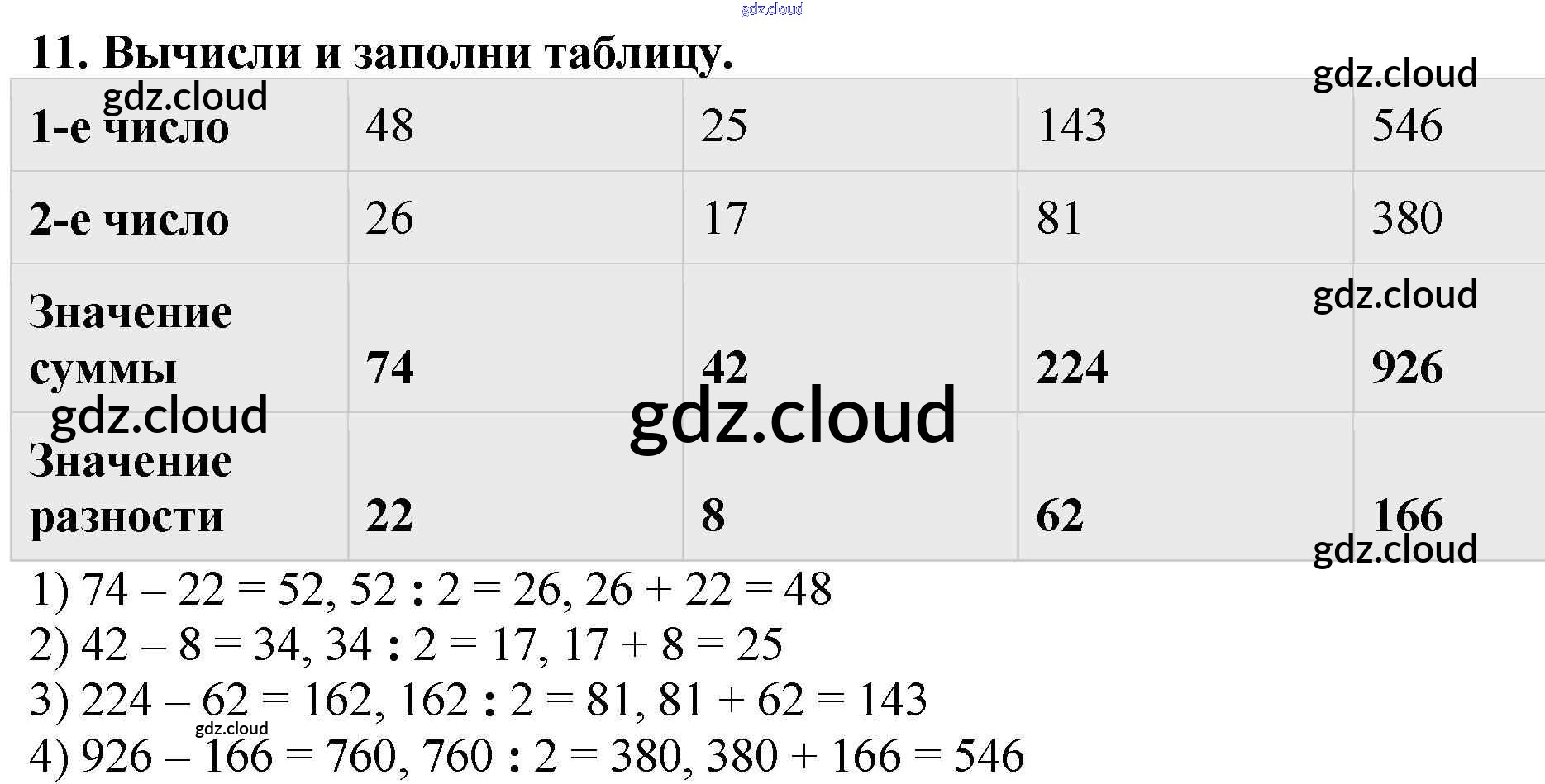 Ответ на задание 11 Тетрадь для самостоятельной работы Математика за 4 (четвертый) класс Захарова, Юдина 2015 Часть 1, 2