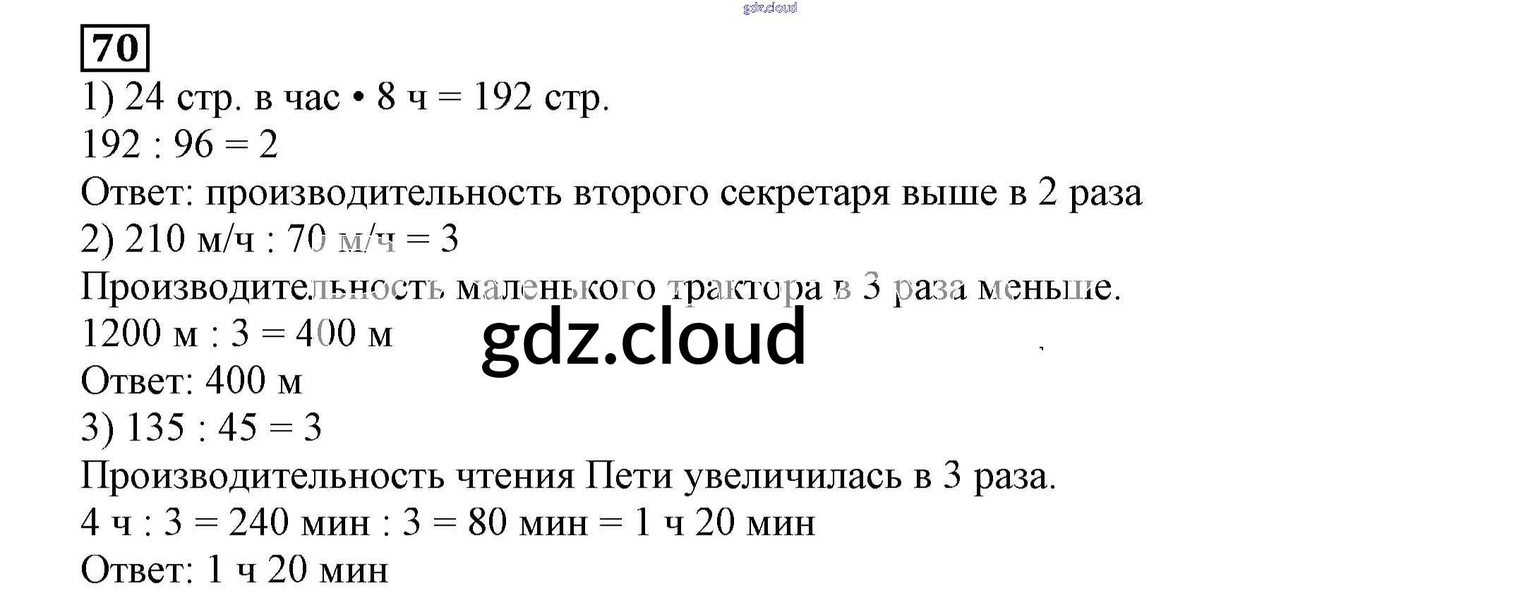 Ответ на задание 70 Тетрадь для самостоятельной работы Математика  за 4 (четвертый) класс Захарова, Юдина   2015 Часть 1, 2