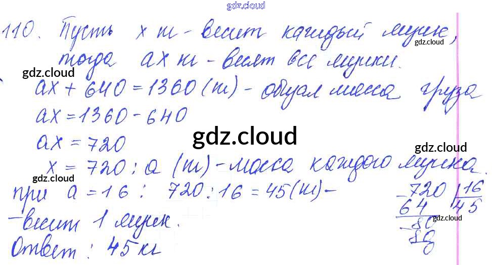 Ответ на задание 110 Дидактические материалы Математика за 5 (пятый) класс Чесноков, Нешков 2014