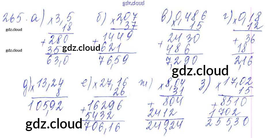 Ответ на задание 265 Дидактические материалы Математика за 5 (пятый) класс Чесноков, Нешков 2014