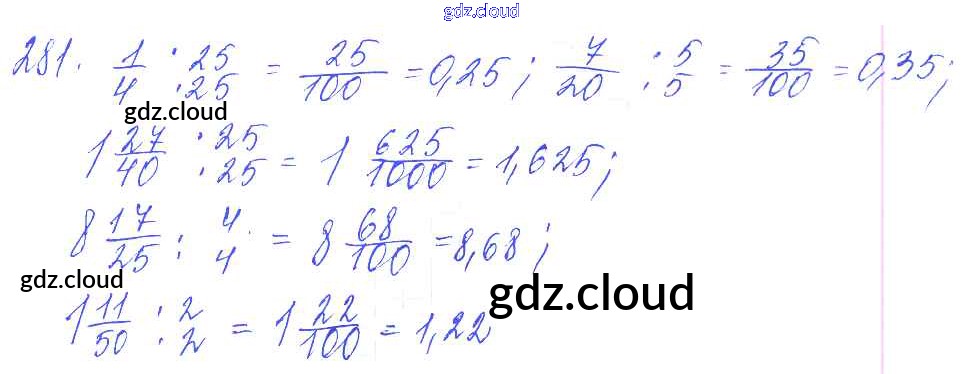 Ответ на задание 281 Дидактические материалы Математика за 5 (пятый) класс Чесноков, Нешков 2014