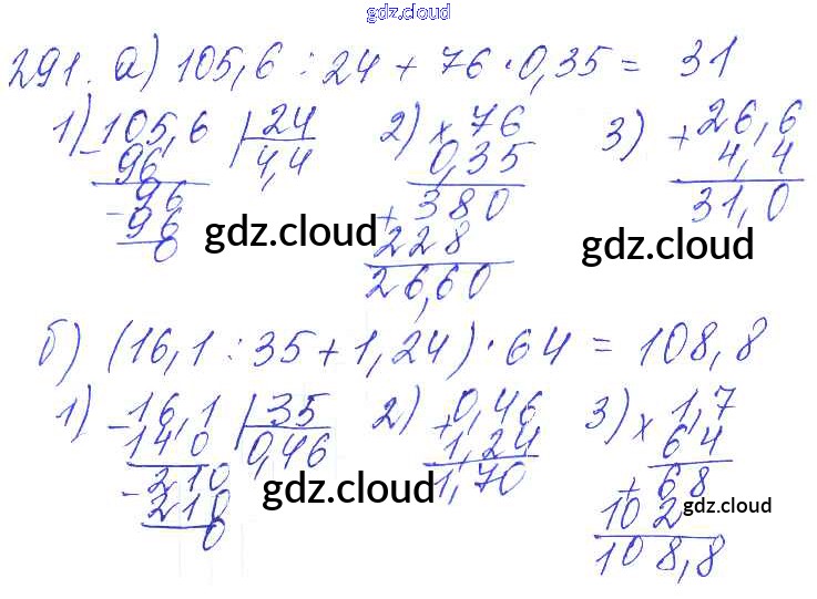 Ответ на задание 291 Дидактические материалы Математика за 5 (пятый) класс Чесноков, Нешков 2014