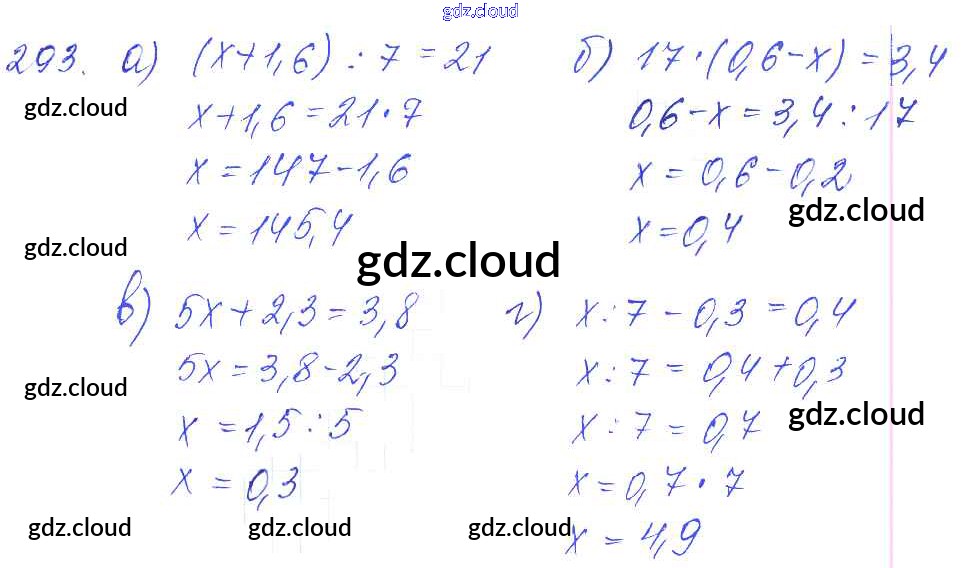 Ответ на задание 293 Дидактические материалы Математика за 5 (пятый) класс Чесноков, Нешков 2014