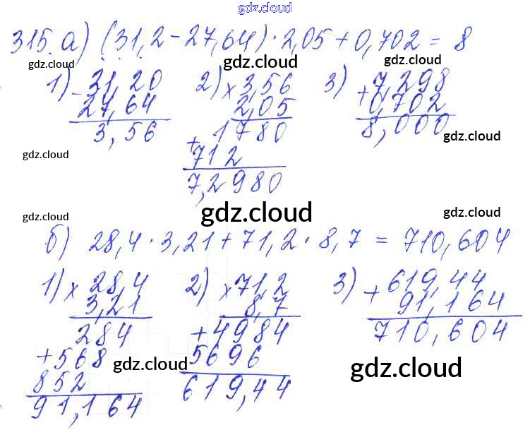 Ответ на задание 315 Дидактические материалы Математика за 5 (пятый) класс Чесноков, Нешков 2014