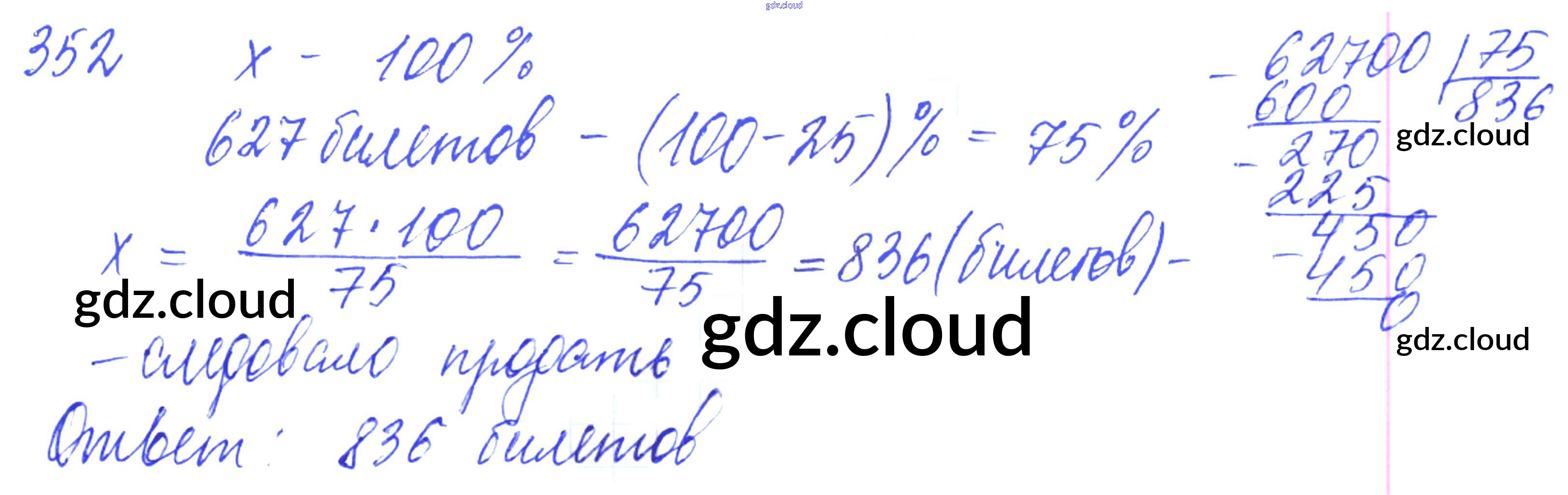 Ответ на задание 352 Дидактические материалы Математика за 5 (пятый) класс Чесноков, Нешков 2014