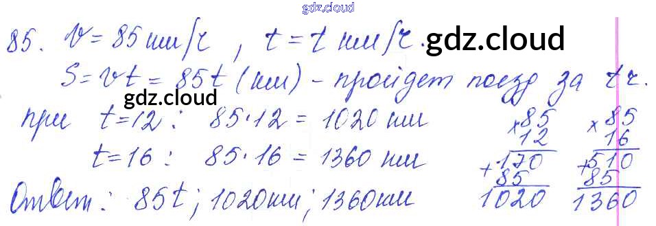 Ответ на задание 85 Дидактические материалы Математика за 5 (пятый) класс Чесноков, Нешков 2014
