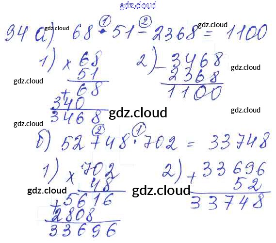 Ответ на задание 94 Дидактические материалы Математика за 5 (пятый) класс Чесноков, Нешков 2014