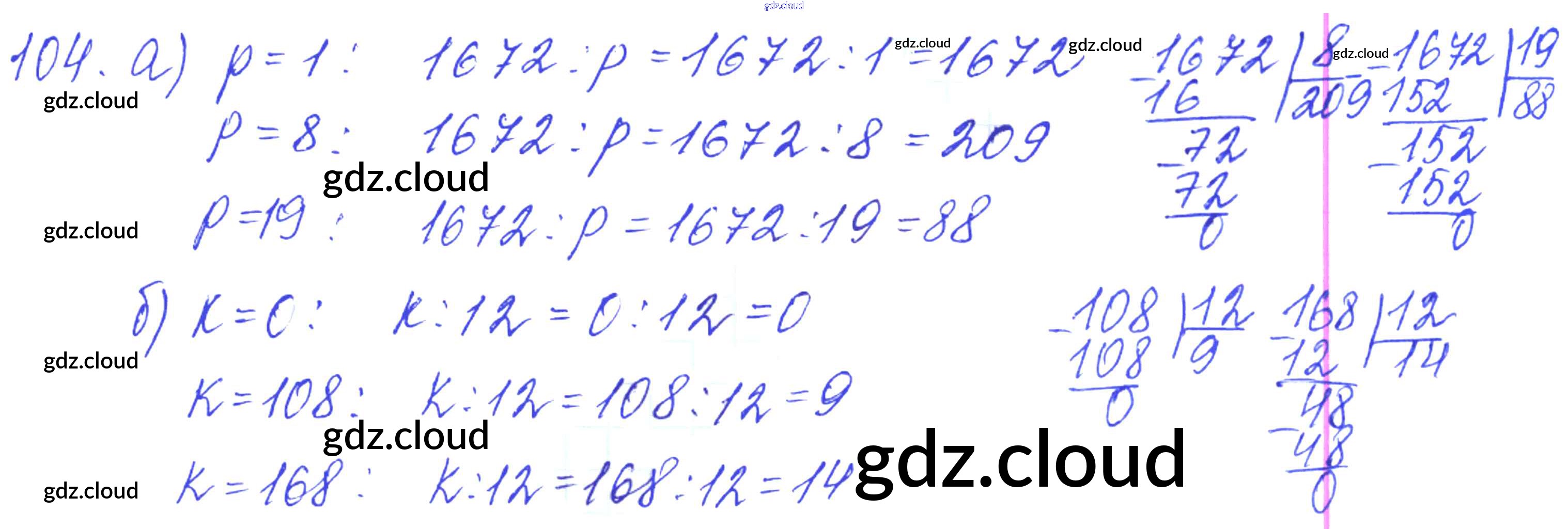 Ответ на задание 104 Дидактические материалы Математика за 5 (пятый) класс Чесноков, Нешков 2014