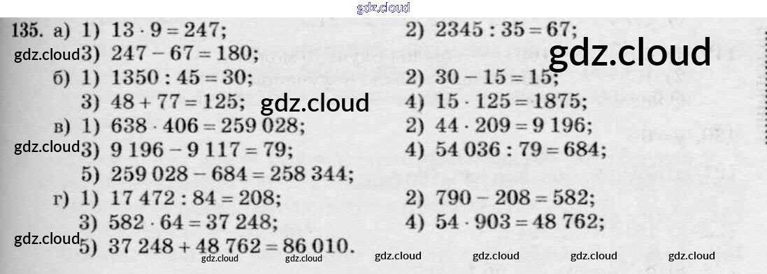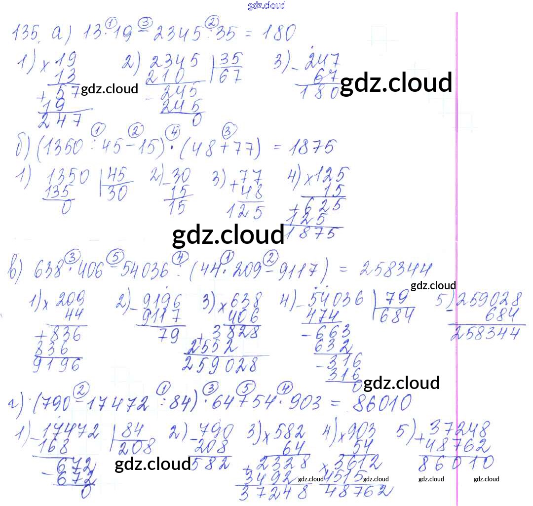 Ответ на задание 135 Дидактические материалы Математика за 5 (пятый) класс Чесноков, Нешков 2014