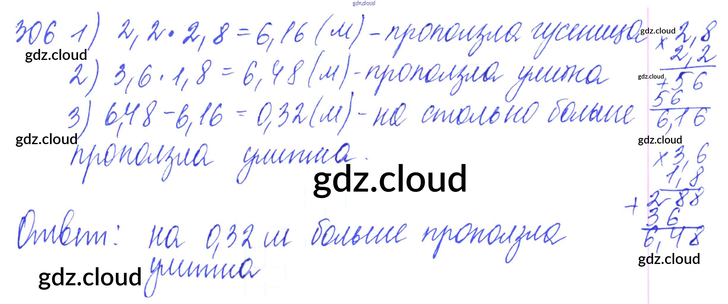 Ответ на задание 306 Дидактические материалы Математика за 5 (пятый) класс Чесноков, Нешков 2014