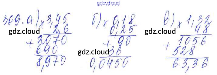 Ответ на задание 309 Дидактические материалы Математика за 5 (пятый) класс Чесноков, Нешков 2014