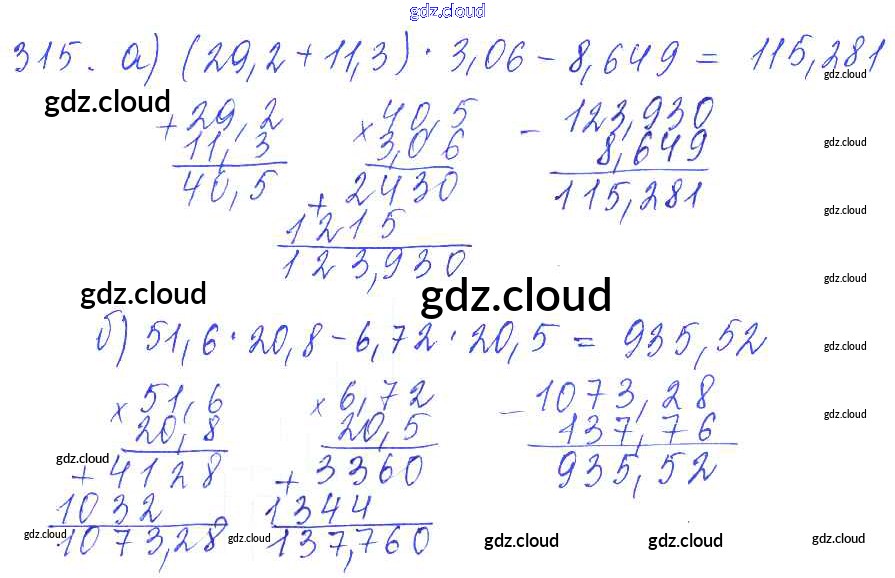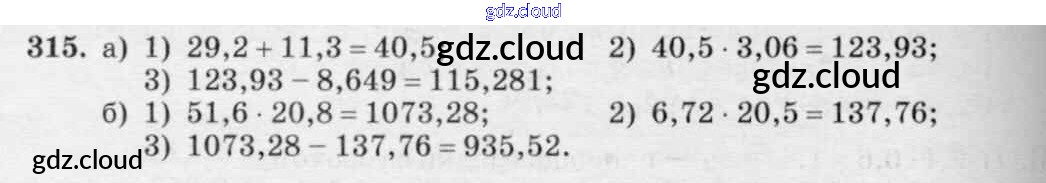 Ответ на задание 315 Дидактические материалы Математика за 5 (пятый) класс Чесноков, Нешков 2014
