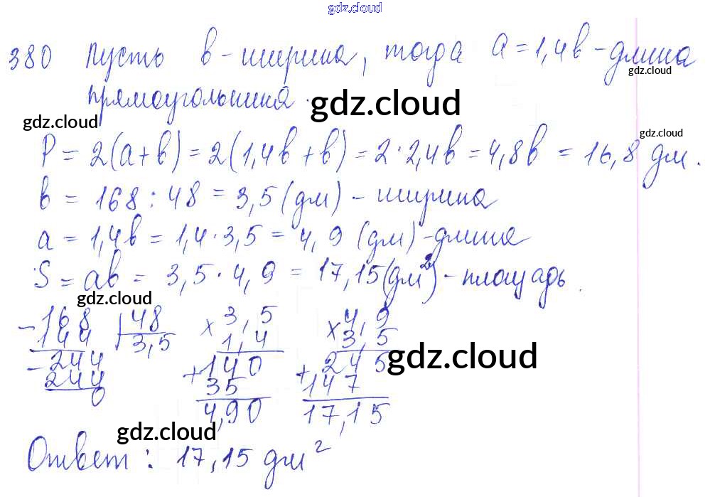 Ответ на задание 380 Дидактические материалы Математика за 5 (пятый) класс Чесноков, Нешков 2014