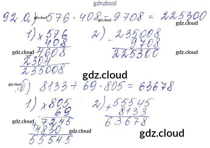 Ответ на задание 92 Дидактические материалы Математика за 5 (пятый) класс Чесноков, Нешков 2014