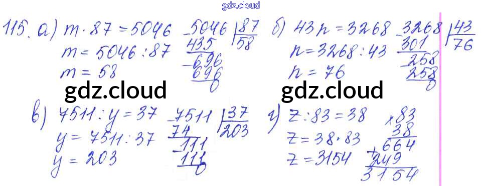 Ответ на задание 115 Дидактические материалы Математика за 5 (пятый) класс Чесноков, Нешков 2014