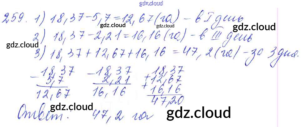 Ответ на задание 259 Дидактические материалы Математика за 5 (пятый) класс Чесноков, Нешков 2014