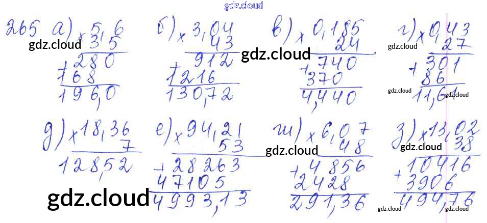 Ответ на задание 265 Дидактические материалы Математика за 5 (пятый) класс Чесноков, Нешков 2014