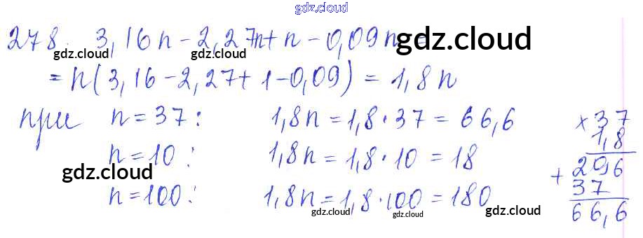 Ответ на задание 278 Дидактические материалы Математика за 5 (пятый) класс Чесноков, Нешков 2014