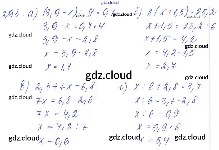 Ответ на задание 293 Дидактические материалы Математика за 5 (пятый) класс Чесноков, Нешков 2014