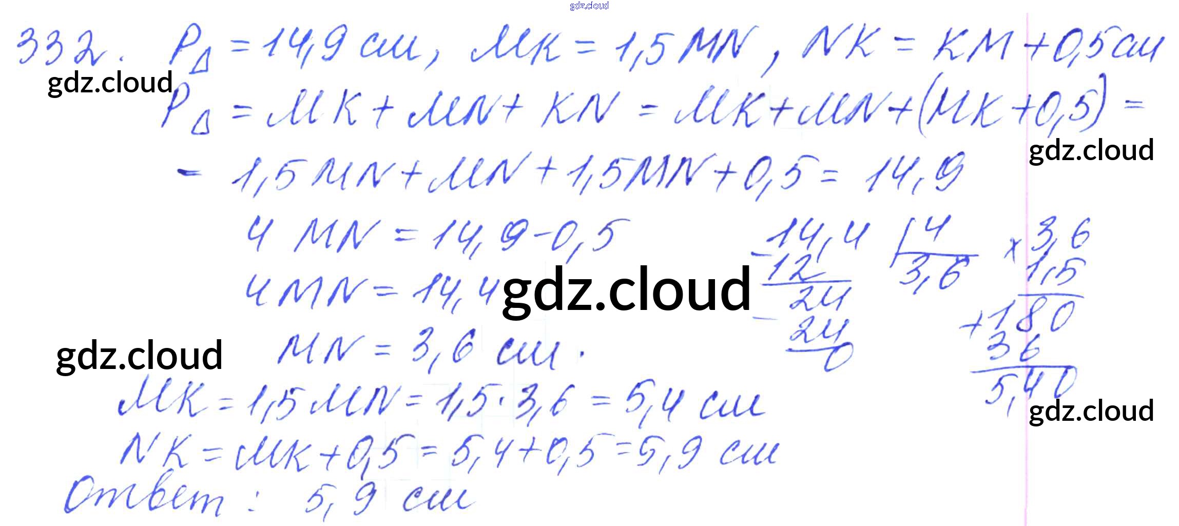 Ответ на задание 332 Дидактические материалы Математика за 5 (пятый) класс Чесноков, Нешков 2014